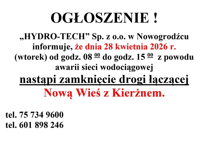 "Hydro-Tech" Spółka z o.o. w Nowogrodźcu informuje,
